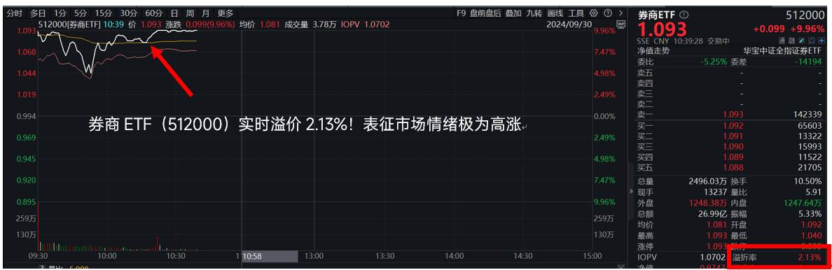A股顶流券商ETF(512000)场内价格再度涨停,强势冲击两连板!实时成交额已超26亿元。值得注意的是,券商ETF(512000)实时溢价2.13%,表征市场情绪亢奋。