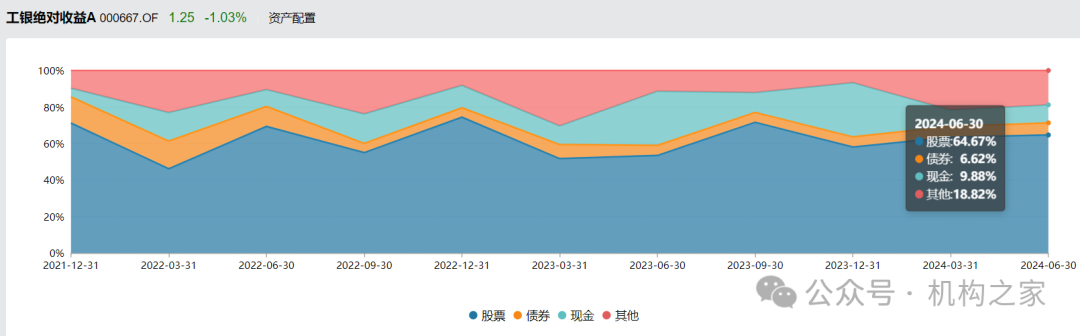 查询该基金的资产配置情况可知,该基金截止2024年6月30日的资产配置结构是股票64.67%、债券6.62%、现金9.88%、其他18.82%。根据基金的策略描述,其他的部分配置应是股指期货等衍生品。