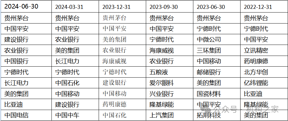 下表是“工银绝对收益A”近几个季度的前十大重仓股: