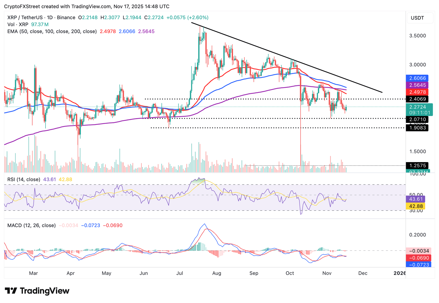 XRP 目前也低于关键移动平均线,包括 50 日指数移动平均线 (EMA) 2.49 美元、200 日 EMA 2.56 美元和 100 日 EMA 2.60 美元,这些均构成阻力位。