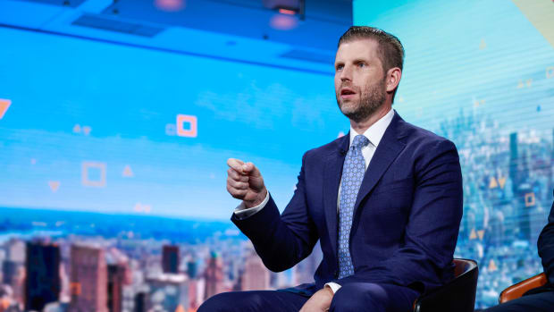 2025年8月29日星期五,特朗普集团执行副总裁埃里克·特朗普在中国香港举行的亚洲比特币大会上发表讲话。