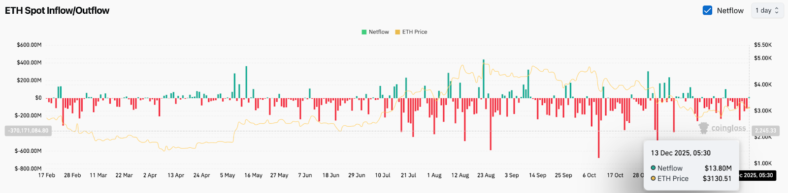 截至发稿时,以太坊交易价格接近 3130 美元,此前它再次尝试收复下降趋势线和短期 EMA 阻力位失败。由于 ETF 资金持续流出,买家难以守住 3000 美元至 3050 美元的支撑区域,市场依然承压。紧张局势显而易见。现货需求喜忧参半,而技术结构仍然有利于卖方。