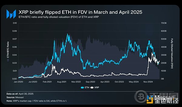 这场争议在今年上半年似乎达到了顶点。3 月,XRP 的完全稀释估值一度超过 ETH(值得注意的是,ETH 已完全流通,而 XRP 仅约 60% 的供应量处于流通状态)。