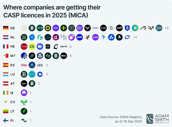 法案的重点在于,只要在一个欧盟成员国获得加密资产服务商牌照,即可在全部27 个成员国合规展业。