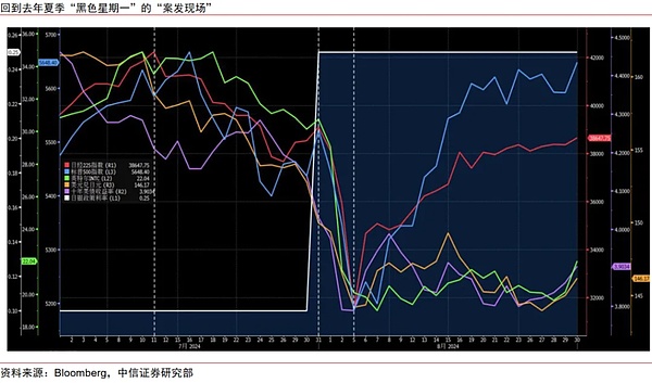 进一步回顾时间线,我们认为去年夏季的“黑色星期一”主要是由衰退预期升温和AI叙事动摇等美国因素造成,日元套息交易逆转只是加剧彼时市场避险情绪的次要因素。