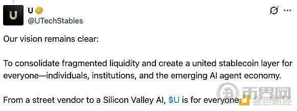 但故事并未就此结束。 从 FDUSD 到 BFUSD,再到 United Stables($U),币安并未放弃稳定币,而是在失败中进化,从霸权式统一转向聚合式吞噬,甚至提前为 AI 经济铺路。