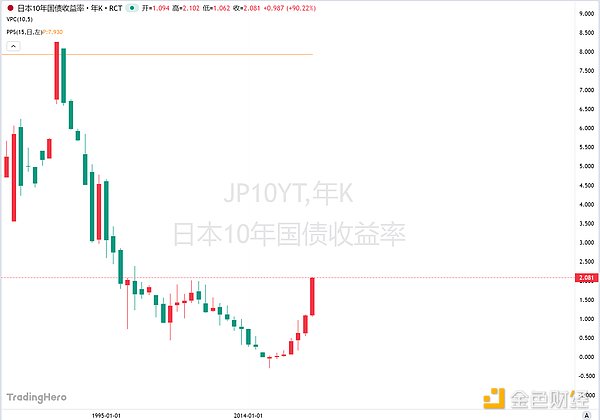 日本10年期国债收益率持续飙升,今年已几乎翻倍,达到2.08%。