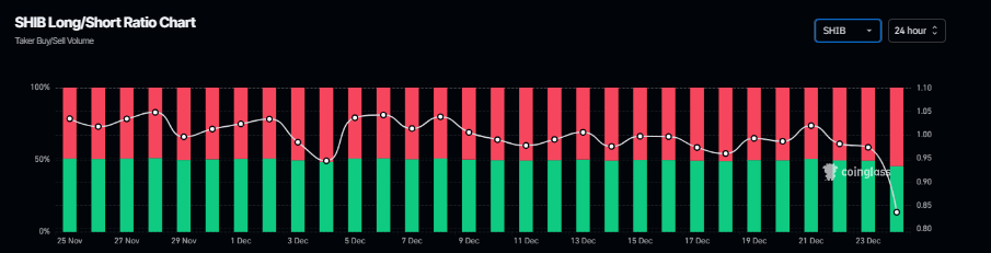 此外,Coinglass数据显示,SHIB的多空比周三达到0.83,创一个月以来新高。该比率低于1表明市场看跌情绪浓厚,因为更多交易者押注该模因币价格下跌。
