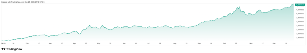 根据年初至今的业绩数据,假设投资者在2025年初将1000美元平均分配到比特币、以太坊、黄金和白银,那么其投资组合的总价值目前约为1505美元,累计收益约为50%。整体收益主要由贵金属推动,足以弥补加密货币的损失。