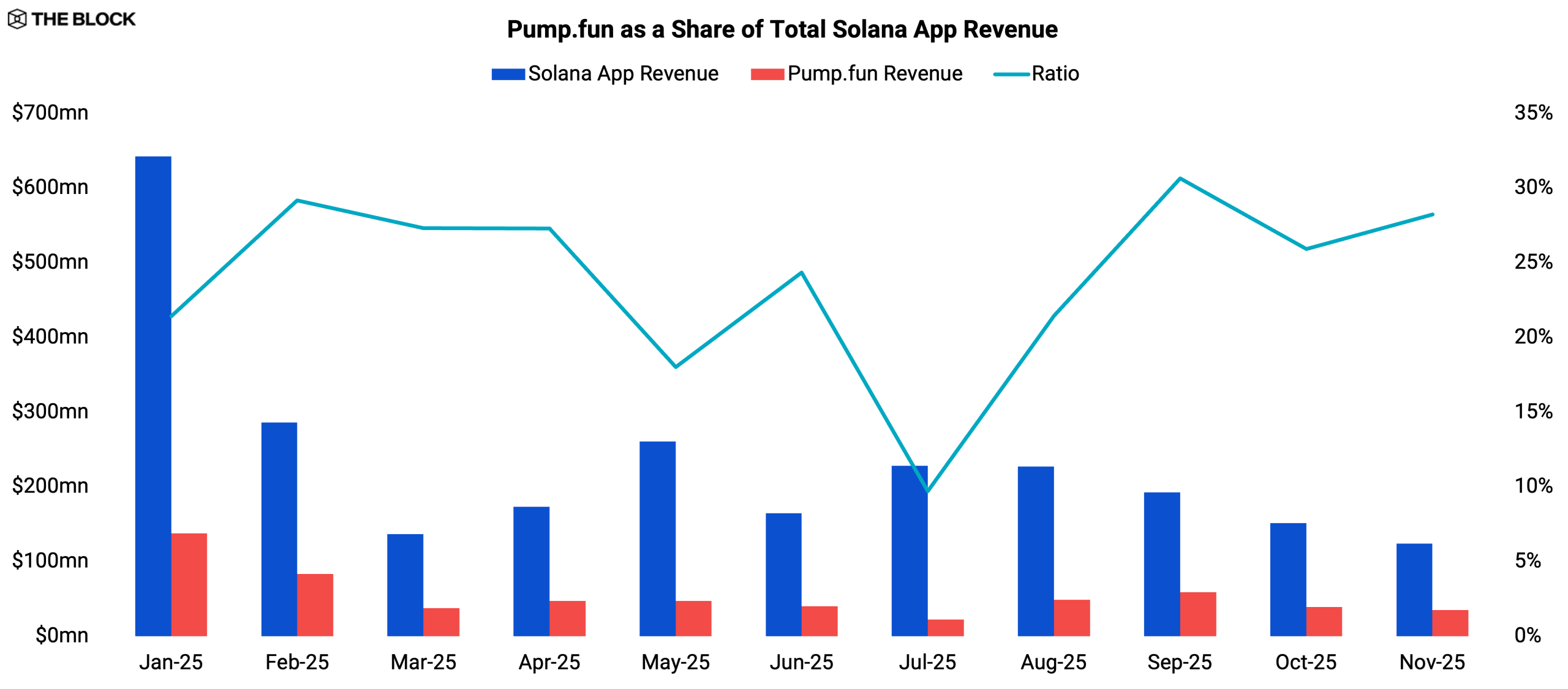 这种主导地位主要集中在前期。1 月份 Solana DEX 的交易量创历史新高,其中 $TRUMP 和 $MELANIA 的官方表情包占据了很大一部分。近一半(约48.5%)这项活动中,仅 Pump.fun 就贡献了大约23%Solana 年初至今的应用收入中,启动平台已成为网络经济的核心组成部分,并巩固了其“赌场链”的声誉。随着时间的推移,模因币的势头逐渐减弱,Solana 在去中心化交易所 (DEX) 的主导地位被以太坊和 BNB 链更为均衡的份额所取代,凸显了该网络对少数模因催化剂的依赖性。