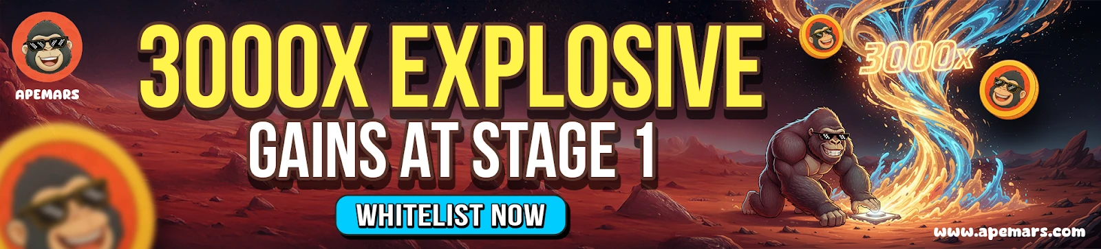 APEMARSAPEMARS 将其最大的优势放在了最关键的地方:白名单准入。白名单参与者无需等待公开发售,即可优先参与第一阶段,抢占先机,在更广泛的需求涌现之前占据有利位置。与上述项目不同,APEMARS 尚未正式上线。它正在筹备围绕“猿猴指挥官”任务故事展开的结构化预售,价格会根据阶段逐步递增。这使得 APEMARS 成为少数几个即将推出的模因币之一,早期参与者可以在任何公开定价或交易所上市之前就锁定份额。