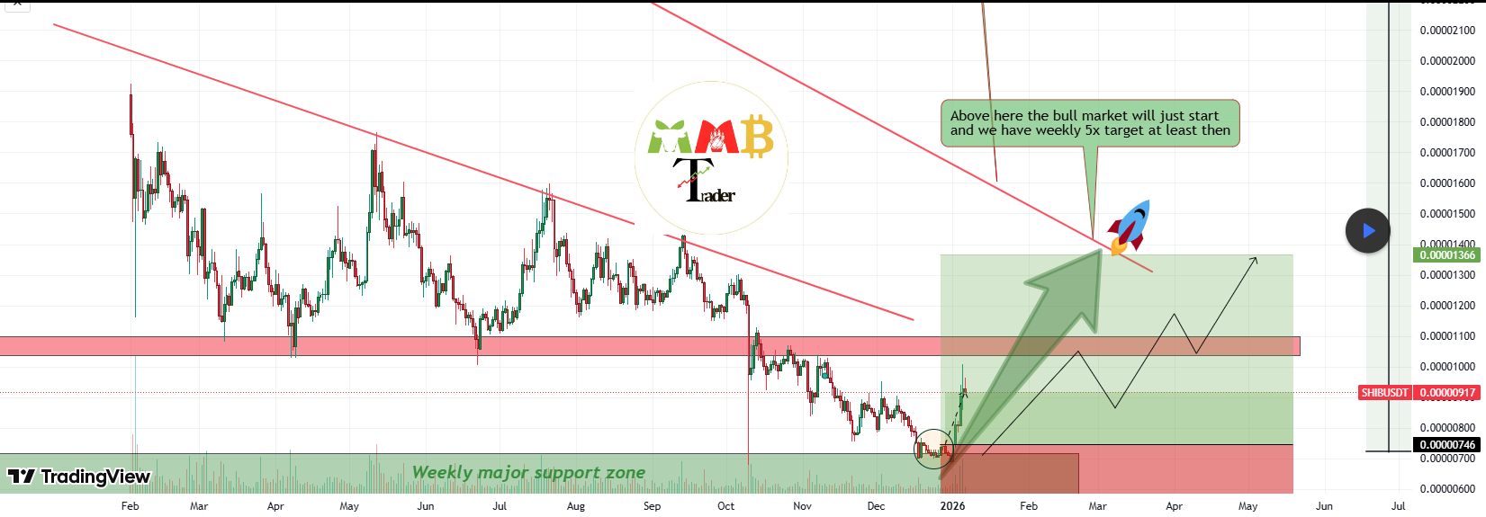 作为背景,SHIB在12月31日跌至0.0000068美元的低点,此前该股经历了始于10月并持续到2025年第四季度的下跌趋势。然而,分析师指出,价格走势守住了0.0000068美元的支撑位,并从该支撑位反弹,为价格上涨奠定了坚实的基础。