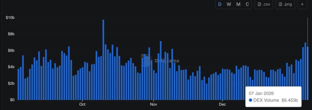 Pump.fun 的日交易量峰值曾达到 20 亿美元。Solana DEX 在 2025 年的大部分时间里,月交易量都领先于所有区块链。低廉的手续费使得快速交易成本低廉,这吸引了众多短线交易者。