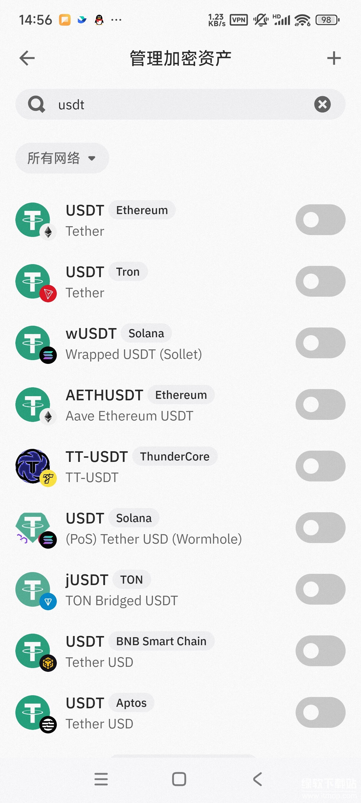 发送成功后,USDT会自动出现在的Trust Wallet主界面。如果没有看到,可以手动添加。点击主界面右上角的“ ”号,搜索“USDT”,选择需要的类型,点击“添加”即可。