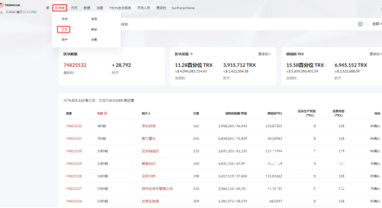 3.区块查询:输入区块高度(如#45000000),查看该区块的交易数量、出块时间、超级代表节点。