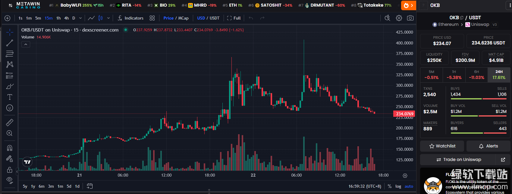 OKB的市场表现已反映出生态驱动的价值提升。2025年8月13日销毁事件公布后,截至8月22日,OKB价格从117美元飙升至234美元,社交媒体讨论量激增300%,衍生品未平仓合约达2.1亿美元,市场投机情绪与基本面改善形成共振。