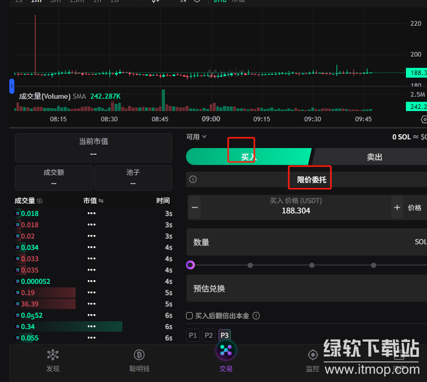 市价单:以当前市场价立即成交,适合快速建仓;限价单:自定义买入价格,等待市场波动触发成交;输入购买数量(如100 USDT等值SOL),确认订单后完成交易。