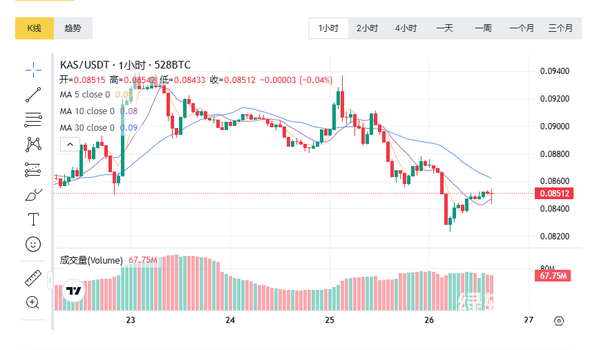 KAS币当前价格稳定在$0.085美元,较2025年初上涨约10%,市值达22.6亿美元,全球排名第57位。技术层面,eKAS智能合约平台已进入测试阶段,社区对Casplex L2上线充满期待;社区规模持续扩张,Twitter关注量突破50万,Reddit活跃用户达12万,机构用户参与度显著提升。