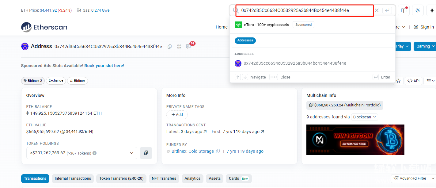 访问Etherscan官网,在搜索框输入钱包地址(如0x742d35Cc6634C0532925a3b844Bc454e4438f44e);