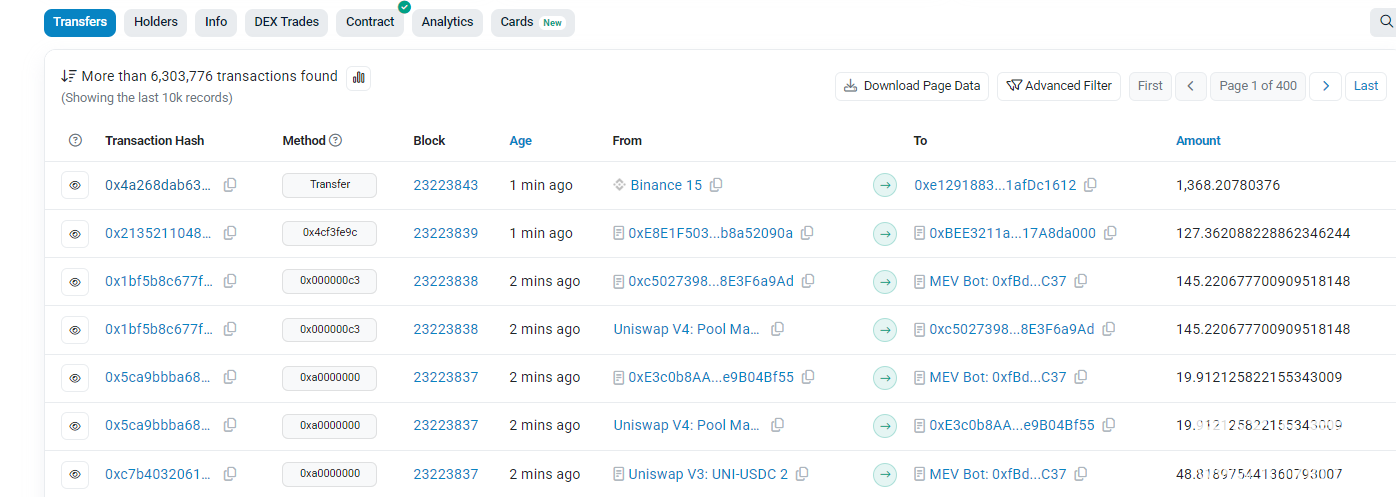 功能:输入代币合约地址(如USDT的0xdAC17F958D2ee523a2206206994597C13D831ec7),查询总供应量、持有人数、交易次数及大户持仓分布。