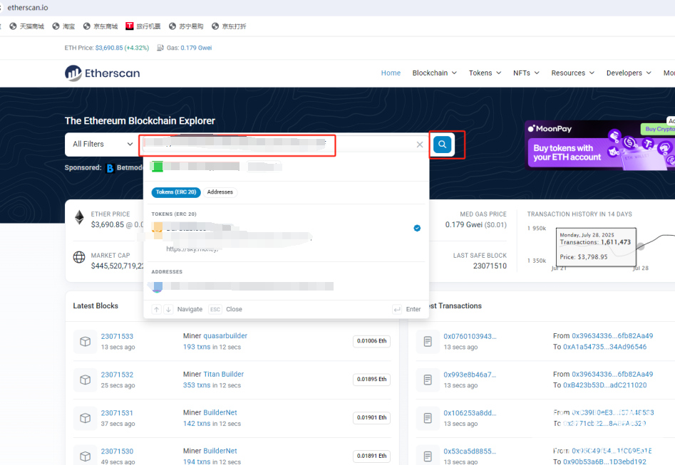 功能:输入任意以太坊地址(如0x...格式),可查看余额、交易历史、代币持仓、NFT资产及智能合约交互记录;应用场景:监控个人钱包余额变动;分析巨鲸地址持仓变化(如追踪Vitalik地址的ETH转移);识别可疑地址(如被标记为“诈骗”的红色盾牌地址)。