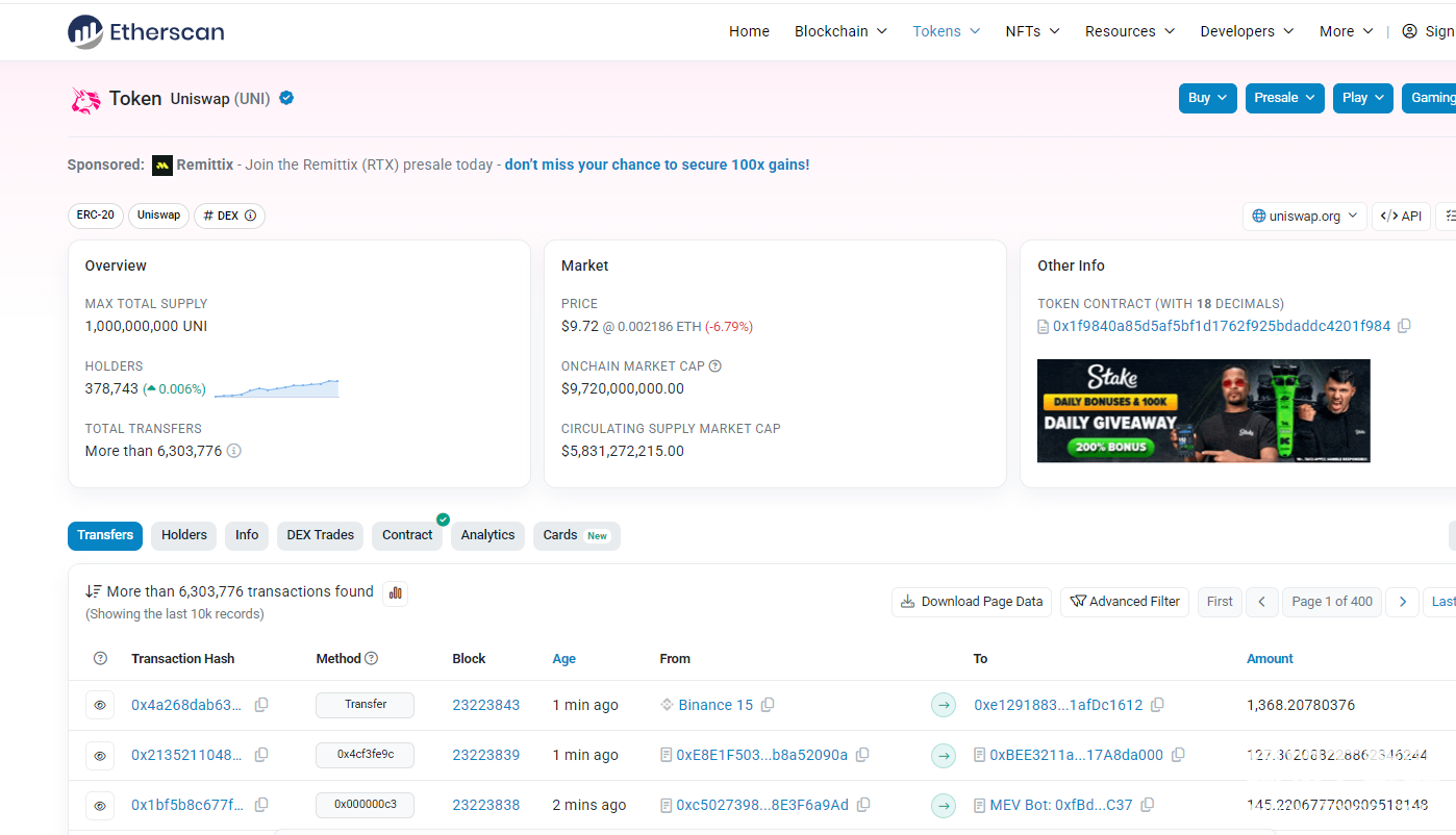 在Etherscan搜索合约地址(如Uniswap的0x1f9840a85d5aF5bf1D1762F925BDADdC4201F984);确认合约是否标记“Verified”,并查看源代码;