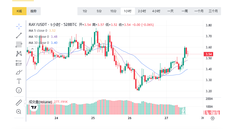 2025年以来,RAY的市场表现和生态扩展呈现积极态势。市场价格方面,2025年8月RAY价格一度飙升至3.54美元,较此前涨幅达到22.76%,当前市值约9.5亿美元,2.68亿枚流通量,显示出市场对其生态发展的信心。