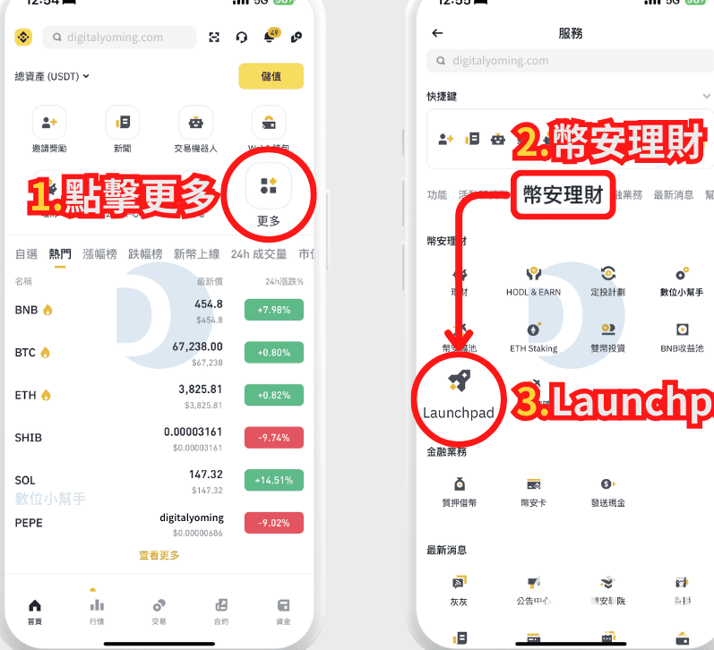 接着前往币某安的Launchpad网站。网页版可以点击上方选单的「更多」> [Launchpad & Launchpool];手机版可以点击「更多」>[Launchpad」前往活动页面。