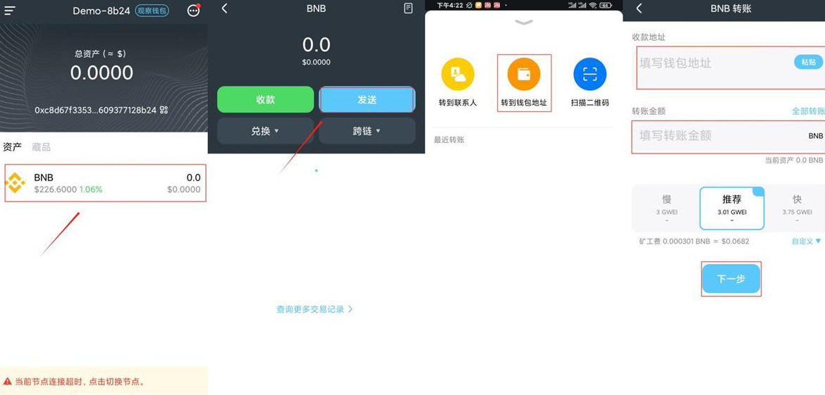 麦子钱包提现人民币往往需要将加密货币转到交易所后再进行提现操作,以BNB提现为例,进入麦子钱包,点击需要提现的币种,选择“发送”--“转到钱包地址”--输入收款地址、填写金额选择下一步。