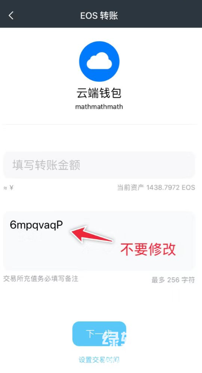 输入金额进行转账(请不要修改自动填写的云端钱包充值备注)。