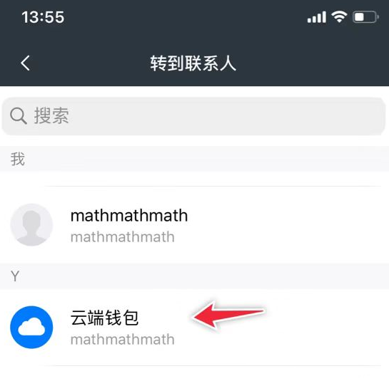 在列表中选择云端钱包(如果没有云端钱包显示,说明你还未完成云端钱包登录。