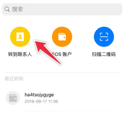 首先你需要完成云端钱包的登录,进入去中心钱包,本文我们以EOS钱包为例,然后点击【转账】,选择【转到联系人】。
