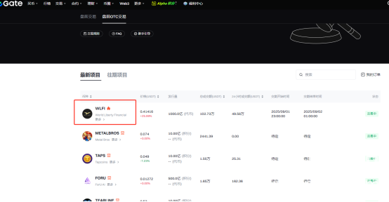 进入盘前OTC交易页面后,鉴于WLFI币作为新上线项目,通常会在列表显眼位置(如第一排)呈现,用户直接点击该代币,即可进入其专属交易页面。