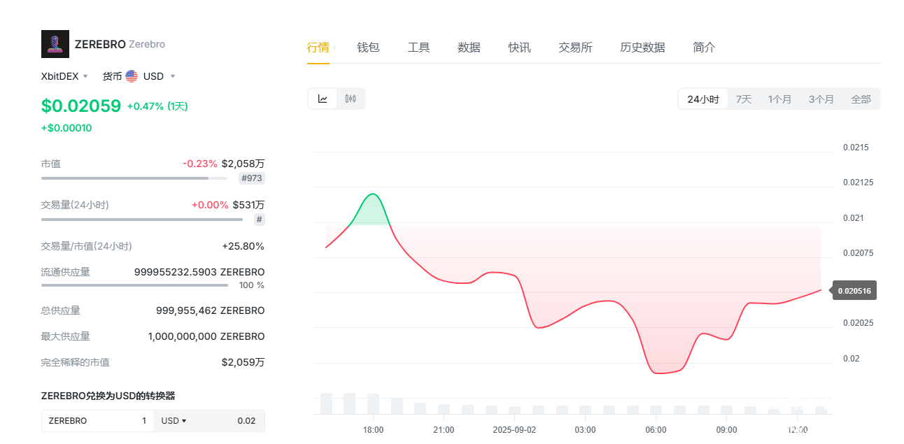 自2024年进入加密领域以来,Zerebro币凭借其独特的AI与区块链结合的概念,在市场上引起了较大反响。其市值在短时间内迅速增长,最高曾突破8亿美元市值,当前市值为2058万美元。在多个顶级中心化交易所和去中心化交易所,如CoinEx、Raydium和XBIT等,都能进行Zerebro币的交易。它的出现,为加密货币市场带来了新的活力,吸引了众多对AI技术和区块链应用感兴趣的投资者。同时,也促使更多项目开始思考如何将AI与区块链更深度地融合,推动了整个行业的创新发展。