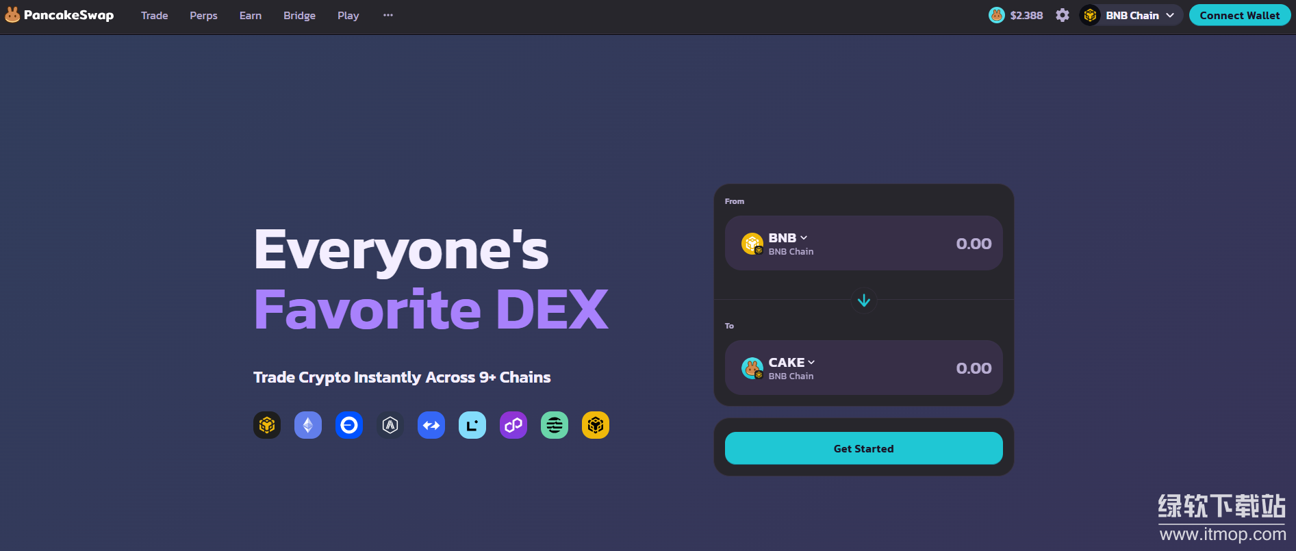 PancakeSwap是由币某安孵化的多链去中心化交易所(DEX),采用自动做市商(AMM)模型,支持用户在BNB Chain、以太坊、Solana、Base等10 区块链网络上进行代币交换、流动性提供及参与DeFi生态。作为当前行业领先的DEX之一,其核心定位是通过多链架构和低门槛设计,为全球用户提供高效、低成本的去中心化金融服务。