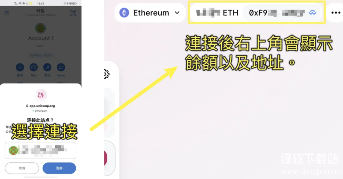 在钱包列表找到huli钱包,点击允许连接,成功后Uniwap就会在右上角显示你huli钱包的地址和余额。