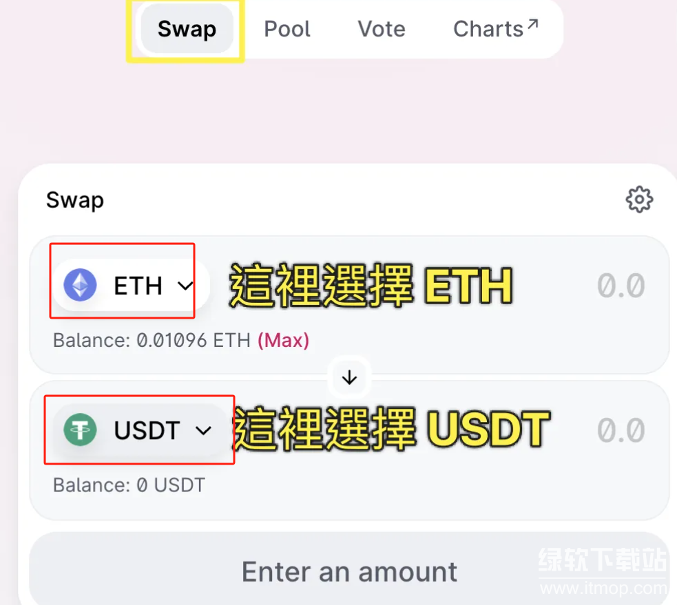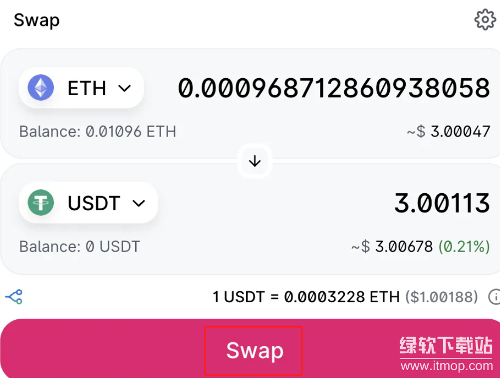 输入 ETH 的数量,系统会自动帮你换算可以买到的 USDT,确定好之后,在下方点选Swap,就可以买了。