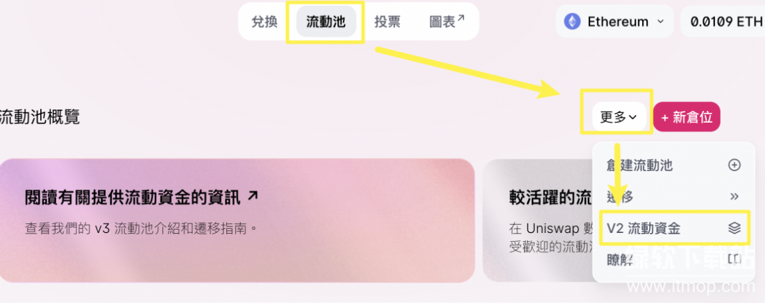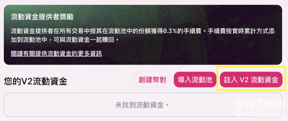 在流动资金页面,选择「注入V2 流动资金」进行点击。