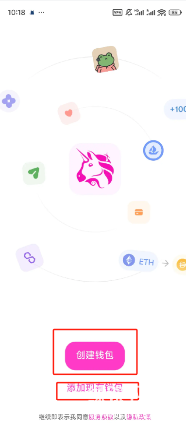 下载并安装Uniswap交易所后,打开应用并点击“创建钱包”按钮,如果已有钱包账户,可以选择“添加现有钱包”进行导入。
