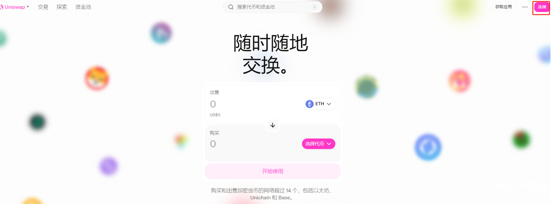 以huli钱包为例,連接 Uniswap交易所。进入Uniswap网页,系统会要求你连接钱包,点击右上角的连接钱包按钮。