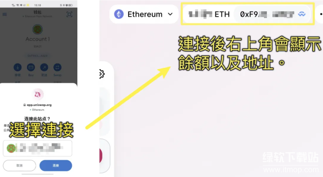 找到huli钱包,点击允许连接,成功后Uniwap就会在右上角显示你huli钱包的地址和余额。