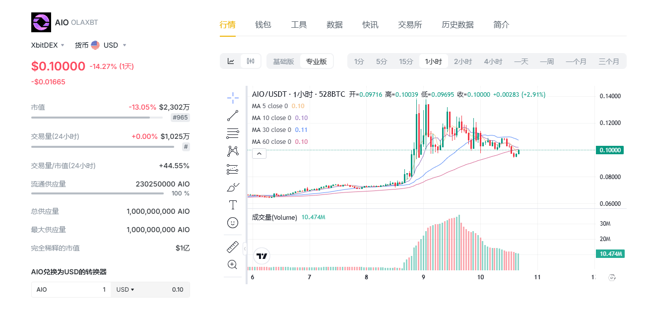 AIO币的市场表现与OLAXBT生态的发展密切相关,随着平台功能的完善和合作的推进,其流通性和应用场景不断扩展。