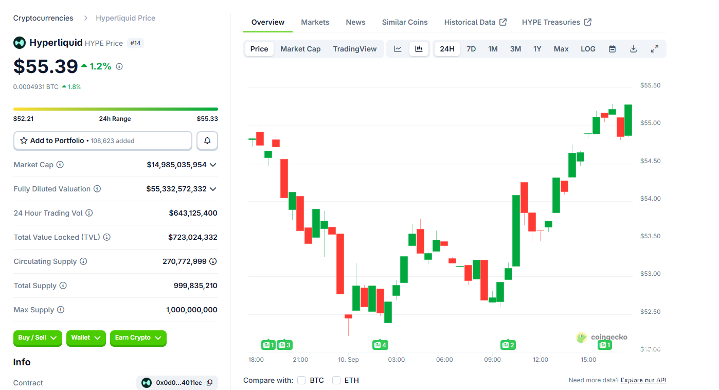 Hyperliquid凭借技术优化与经济模型设计构建了难以复制的流动性护城河,而HYPE币则通过通缩机制与生态扩展形成价值支撑。作为去中心化衍生品交易所龙头,Hyperliquid在2025年以73%的市场份额、日均超300亿美元交易量及60万用户规模,展现出流动性优势对平台竞争力的决定性作用;HYPE币则依托协议收入回购、应用场景拓展及市场需求增长,实现年初至今210%的涨幅,市值达149.8亿美元。