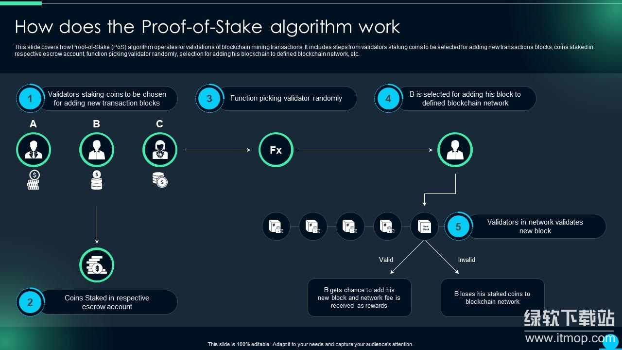 权益证明(PoS)是一种通过验证者质押加密货币作为担保品来验证交易的共识机制,替代了PoW中“算力竞争”的模式,核心是“以币投票”而非“以算力投票”。其运作机制包含四个关键环节: