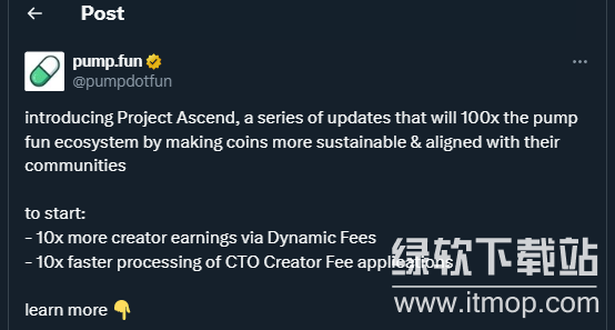 Pump.fun的project Ascend计划是其收益共享系统的升级方案,核心目标为扶持优质团队与代币,优化模因币生态。该计划的关键创新是Dynamic Fees V1动态费率机制,摒弃固定抽成模式,改为依据代币市值调整费率,市值越高,创作者需支付的费用越低。这一设计能让成功项目留存更多资金用于营销、上所及运营,同时激励潜力团队在Solana发行代币。此外,计划包含社群接管机制(CTO),若项目方消极运营,社群可申请将创作者激励转移给实际推动者,且审核时间从数天压缩至数小时。