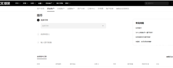 交易所钱包适合短期交易或流动性需求高的场景,但存在三大风险:平台风险、网络攻击以及单点故障,用户可以存储少量的ETH在交易所中,便于平时的交易流动即可。登录交易所账户(以欧意为例),进入「资产管理」板块,找到「提币」选项,点击进入提币页面。
