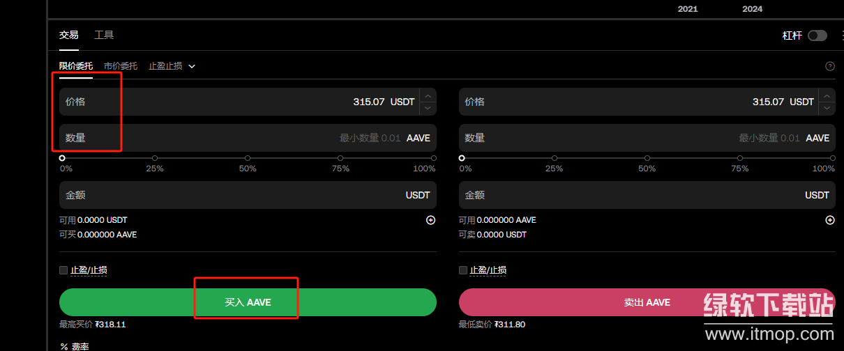 进入“交易”页面,选择“AAVE/USDT”交易对,输入购买数量,点击“买入”完成交易。