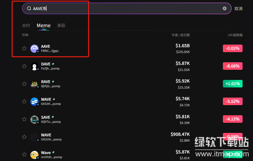 在搜索出来的币种页面找到AAVE币,点击进入交易页面。