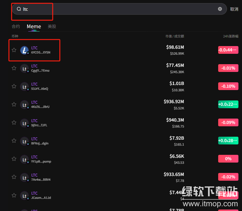 登录成功后,在首页顶部搜索栏输入「LTC」,从下拉列表中选中LTC代币,点击即可进入包含实时K线、深度图及买卖盘的专属交易界面。