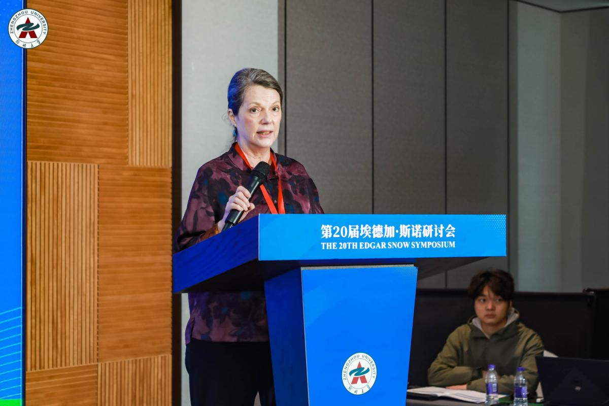 大会主旨报告环节中,来自中美双方的专家学者围绕斯诺研究展开深入交流。沃德以《永恒的桥梁:埃德加·斯诺纪念基金会的历史与传承》为题,回顾了基金会自1974年成立以来的历程。她介绍,基金会在密苏里大学堪萨斯分校设立了斯诺资料档案馆,目前正在推进数字化建设,以便全球学者查阅研究。她还提到基金会长期支持的“斯诺访问学者计划”,为中美学者提供了宝贵的交流机会。她表示,基金会将继续推动中美文化与教育合作,吸引更多青年参与中美友谊事业。